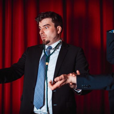 Erleben Sie die revolutionäre Erfindung „Mückentötolin“ am praktischen Beispiel und stellen Sie gemeinsam mit Herricht die Diagnose am „noch lebenden Objekt“ Preil. Übrigens: Wir weisen drauf hin, dass wir Bauchmuskelkrämpfe, die auf Grund von Lachsalven eigens hervorgerufen wurden, im Rahmen der Ersten Hilfe behandelt werden.